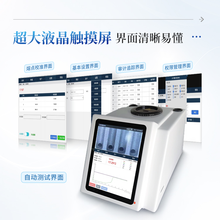 熔点仪完美结合高精度控温技术和高清视频摄像技术,不但为用户提供准确、稳定、可靠的测试结果,还为用户带来高效便捷的测试感受。高清视频可方便清晰的看到样品熔化的全过程,自动检测实时图谱显示,方便用户准确测得样品熔点和熔距。