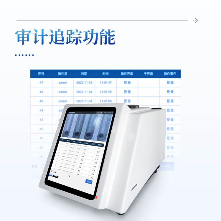 完整版审计追踪和用户分级权限管理, 超级管理员可以修改所有人密码和用户名并可追溯,超级管理员可以修改所有操作员权限,用户帐号有禁用和启用两个功能,人员更替暂时不用账户时可以锁定,使用时可以解封,U盘导出PDF和Excel数据防篡改功能。