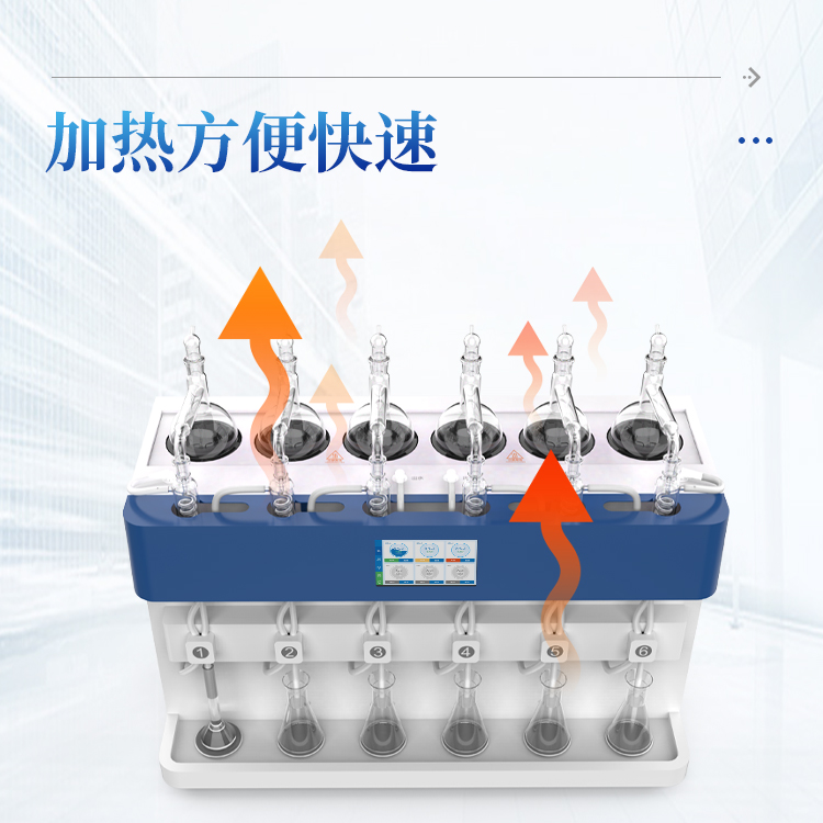 3、加热模块采用远红外陶瓷辐射加热方式,碗状加热热源设计,确保样品容器(圆底烧瓶)与热源密切贴合,加热功率调节范围广、加热均匀性好、热辐射效率高,蒸馏速度快、使用寿命长。