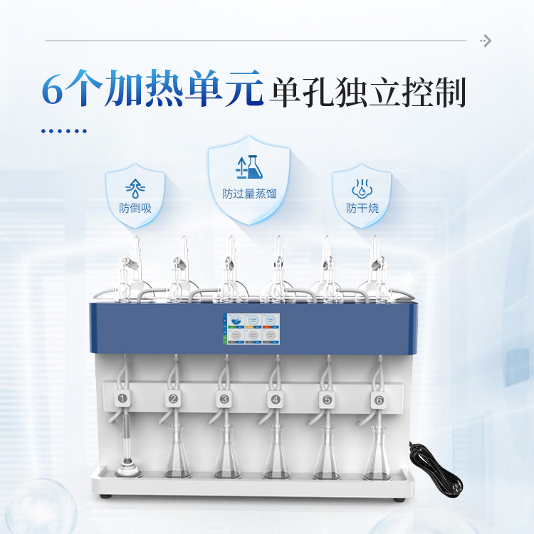 智能一体化蒸馏仪采用智能模块化设计:方法自定义设置保存/读取、开机自动调取使用,冷凝单元特殊定制蛇形冷凝管、智能终点控制防过量蒸馏、防倒吸保护,防干烧保护、实现了智能操作简单、自动蒸馏、美观实用、节能降耗、节省人工的同时为用户做样提高效率节约人员成本开销。