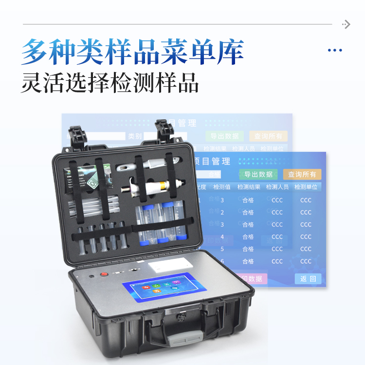5、一体化便携式快检设备,满足现场及流动检测使用需求,能够在同一软件下实现所有检测项目的检测,并可通过同一窗口直观显示检测结果。