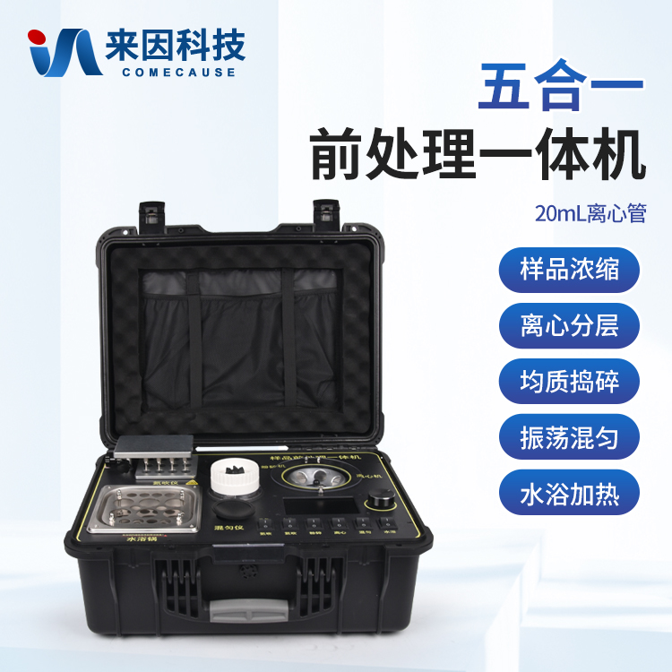 简要描述: 五合一前处理一体机将样本前处理过程中样品浓缩、水浴恒温、离心分层、均质、振荡混匀等步骤所需设备进行集成,仅需一台样品前处理集成箱设备即可完成所有样本前处理过程,并且方便携带,不仅适用于现场检测使用,还可用于色谱、质谱等分析样品的纯化和制备。
