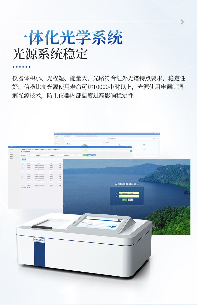 简要描述: 便携式红外测油仪采用了国标规定的校正系数法检测原理,严格按照国标标准公式,使用20mg/L正十六烷,20mg/L异辛烷,100mg/L苯进行校准,最终带入校准公式算出仪器校正系数进行测量样品(也可以使用标准曲线法进行检测);内置无线网络功能,可外接WIFI,实现联网上传功能。