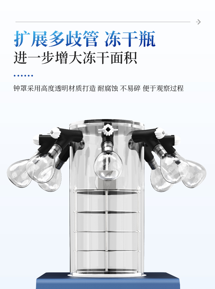 冻干面积 | 0.19 m² | 0.12 m² | 0.09 m² | 均可搭配普通钟罩或多歧管钟罩 |