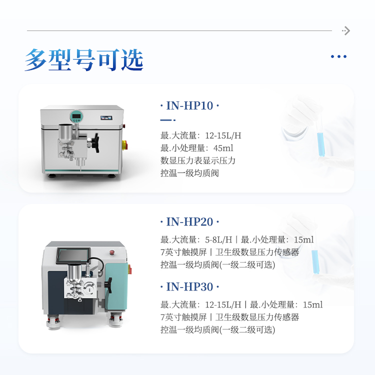 简要描述: 实验室纳米均质仪进料物料粘度:≤2000 cp,最大进料颗粒尺寸 ≤100 μm,物料温度 ≤ 90℃。进料模式:Tri-Clamp快速连接带自吸料设计,无须额外加泵吸料,避免污染及料斗搭配。高压密封采用进口材料,疲劳强度高,耐磨损。使密封长期高压运行保持状态良好。动力源要求:ABB电机泵驱动,电源:220 V/50 Hz。