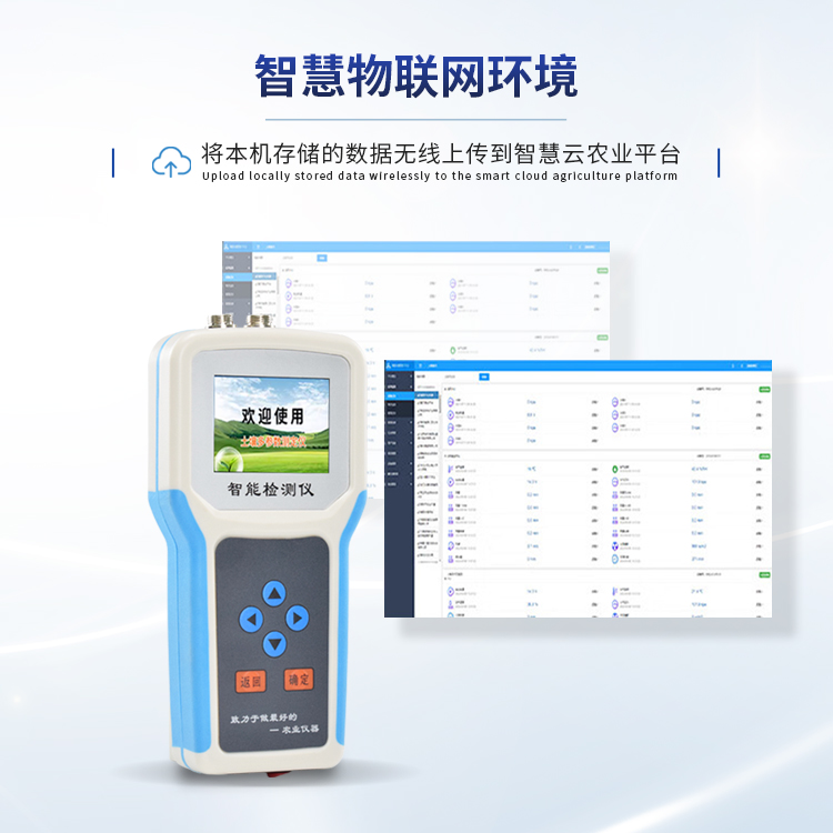 7、仪器配备4G联网功能数据管理平台,将本机存储的被测点环境因子测量历史数据无线上传到智慧云农业平台,方便用户进行数据管理和长期分析。