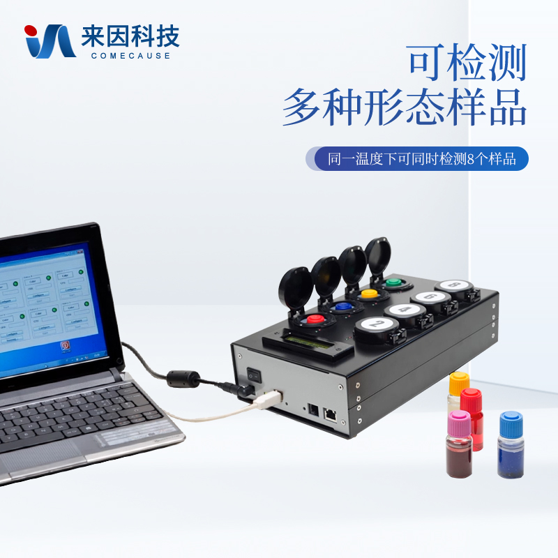 4) 检测样本只需1ml/1g;同一温度下可同时检测8个样品;